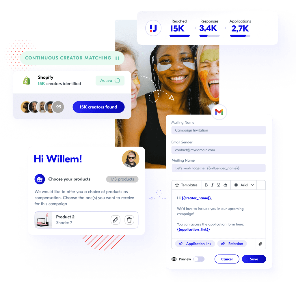 - Shopify integration allows for matching new influential customers continuously