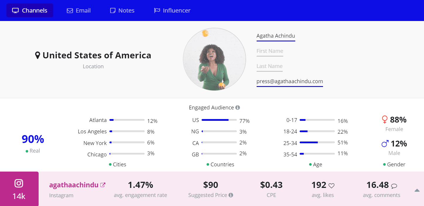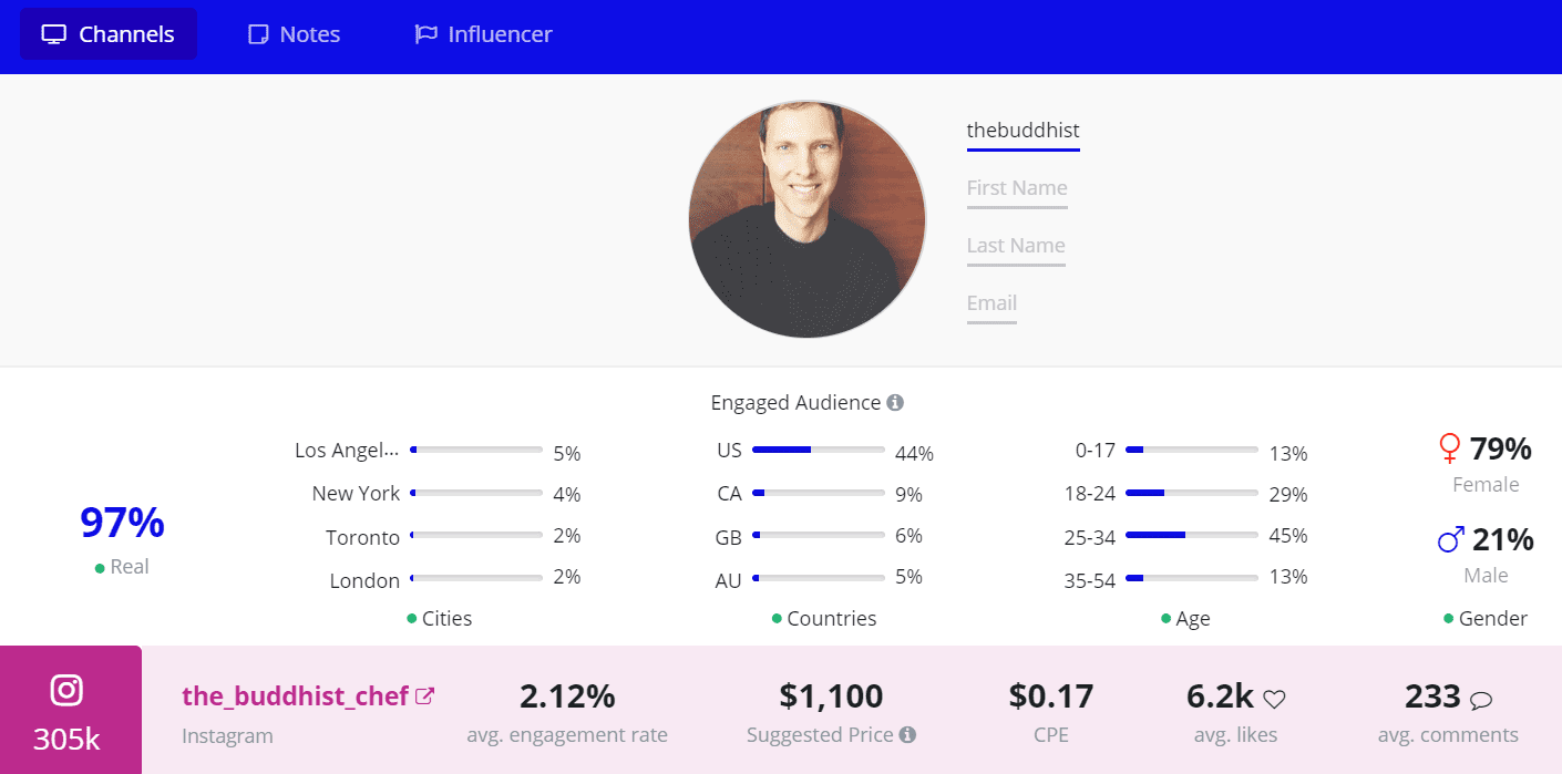 With our Upfluence software’s advanced search criteria, we were able to identify the crème de la crème of healthy food Instagram accounts you should follow in 2020. We’ve identified a mixture of micro to mega influencers, each bringing a unique perspective to healthy eating, including chefs, nutritionists and vegan recipe developers. They are each excelling within the healhy food niche, cultivating a growing following and engagement rate.