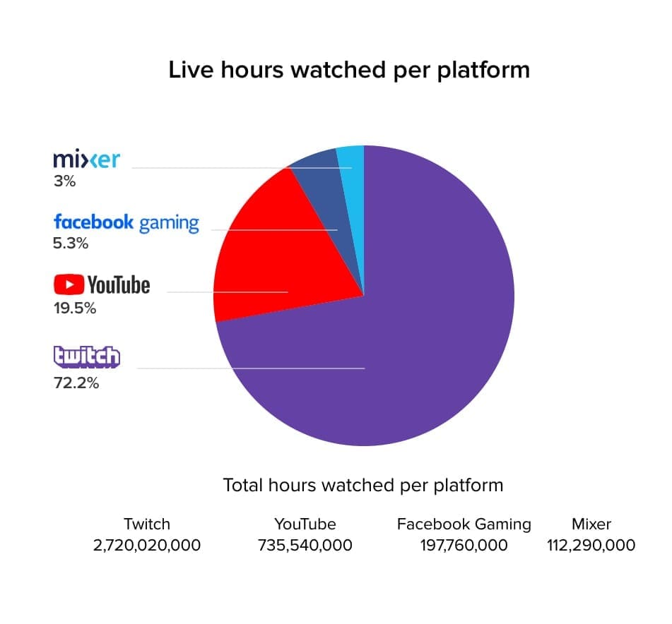 Twitch is a platform built entirely around sharing live video content. This sets it apart from other social media channels.ย Live video content is hugely popular compared to other content formats. 82% of people would prefer to see live video from brands instead of social posts. The immediacy of live video makes it highly engaging and therefore a hugely beneficial content format for brands to exploit. Twitch is the leading platform when it comes to live video audiences compared to similar platforms like YouTube. Twitch accounts for 72.2% of live content watched.