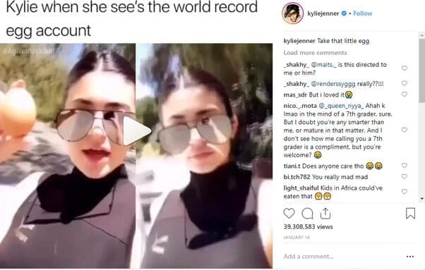 The egg got even more media attention when Kylie Jenner responded to the post with a video of herself cracking a similar egg onto the pavement.