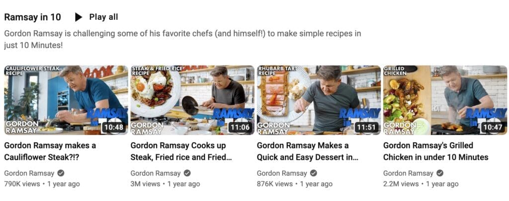 Gordon Ramsay is a British Chef and TV personality most famous for shows such as Hell’s Kitchen and Kitchen Nightmares. On his YouTube channel where he has 20M subscribers he has a video series ‘Next Level Kitchen’. His ‘angry chef’ personality has helped him to grow a huge following for his TV shows and social media content.