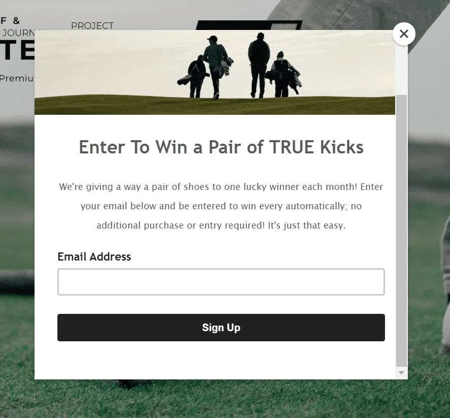 Incorporating images into the pop-up will also draw attention. It’s a good idea to include images of people wearing or using your products as that will help humanize online brand presence and encourage visitors to imagine themselves as a customer. If there isn’t space to include images within a pop-up you can consider experimenting with the shape itself. Most pop-ups are squares or rectangles that align with the website design. However, an unusual shape can really stand out. This example from Yieldify uses fading and layers to create a striking 3D effect to their pop-up.