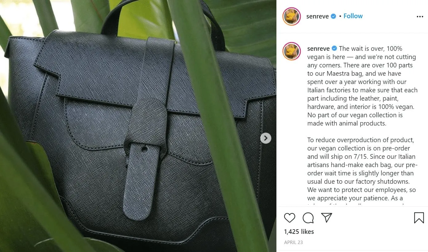 During this time, Senreve also launched its first-ever collection of vegan handbags which would have appealed to a brand new audience, leading to new followers who are fans of brands in the vegan niche.