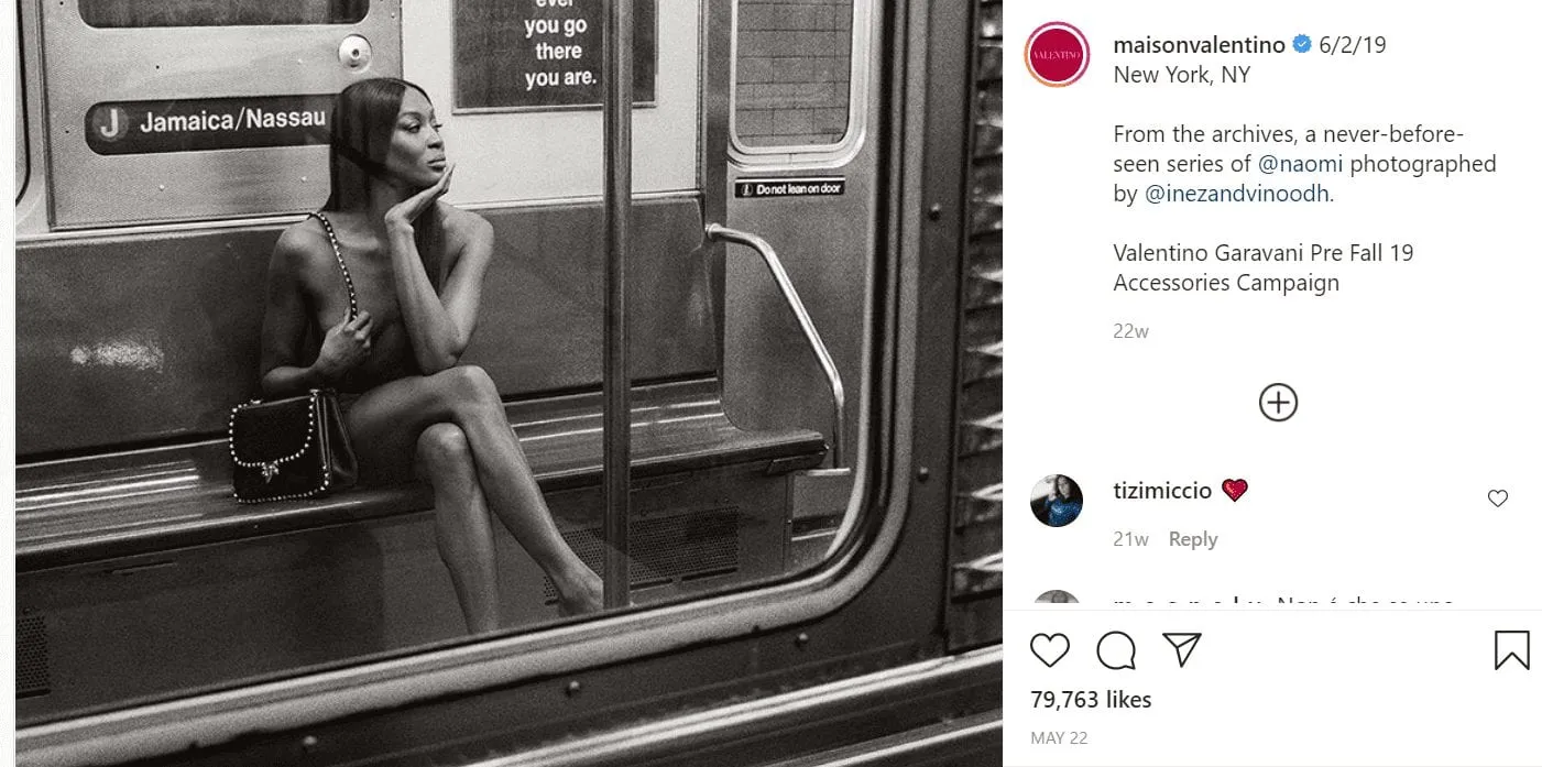 Another content strategy they have used to effectively drive engagement is by releasing never-before-seen images featuring well-known model Naomi Campbell. The draw of exclusive, brand new content that offers a behind-the-scenes glimpse into Naomi Campbell’s collaboration with Valentino encouraged further engagements with the brands’ Instagram content.