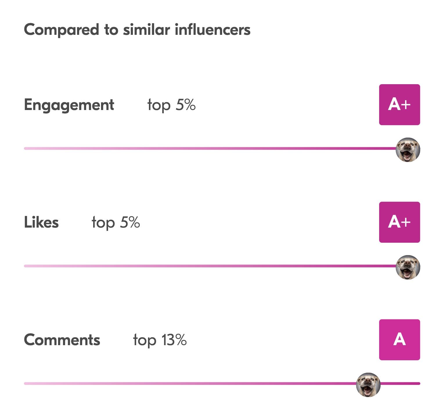 - Stats that show how influencers stack up against similar sized influencers.