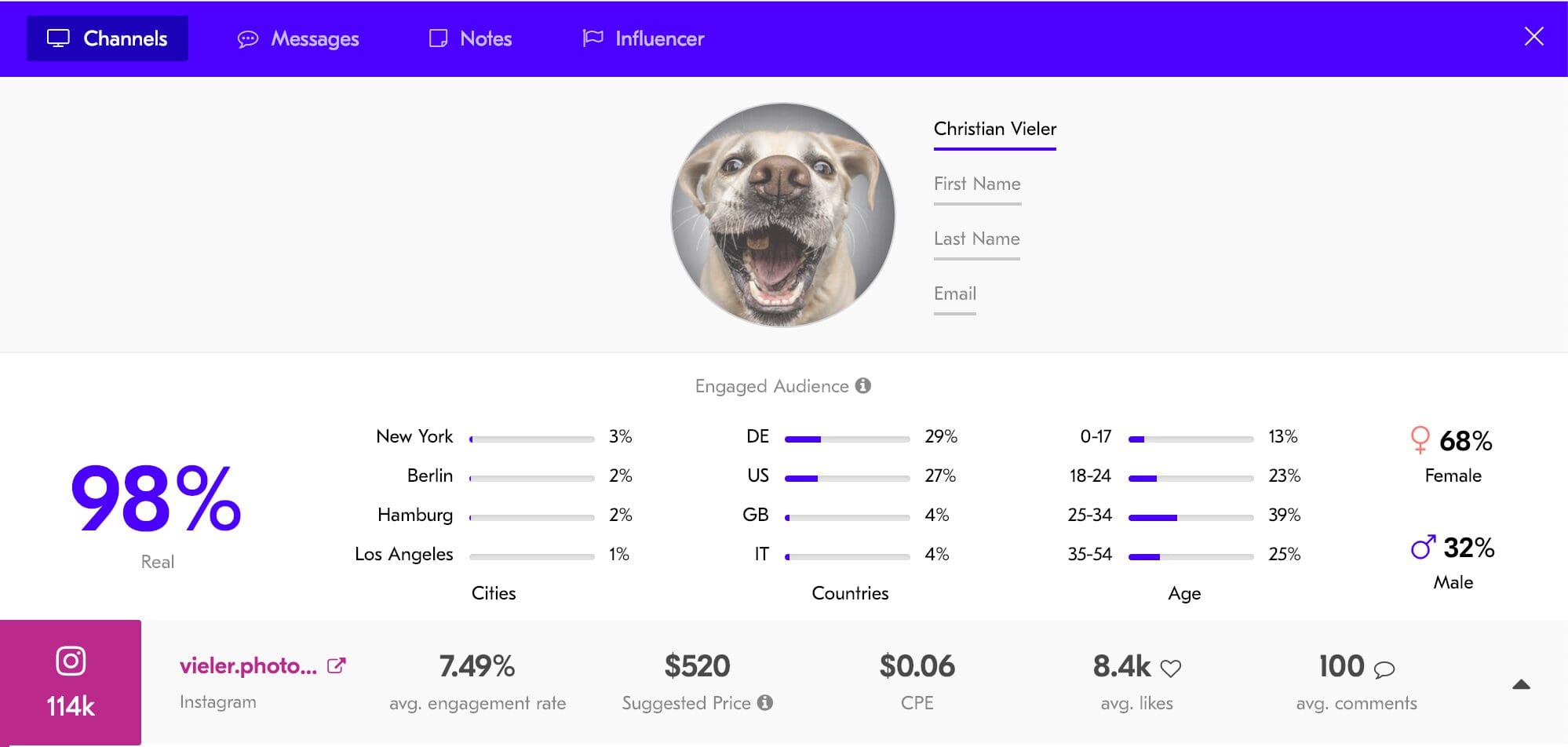 - More data about influencer’s posts and engagements.